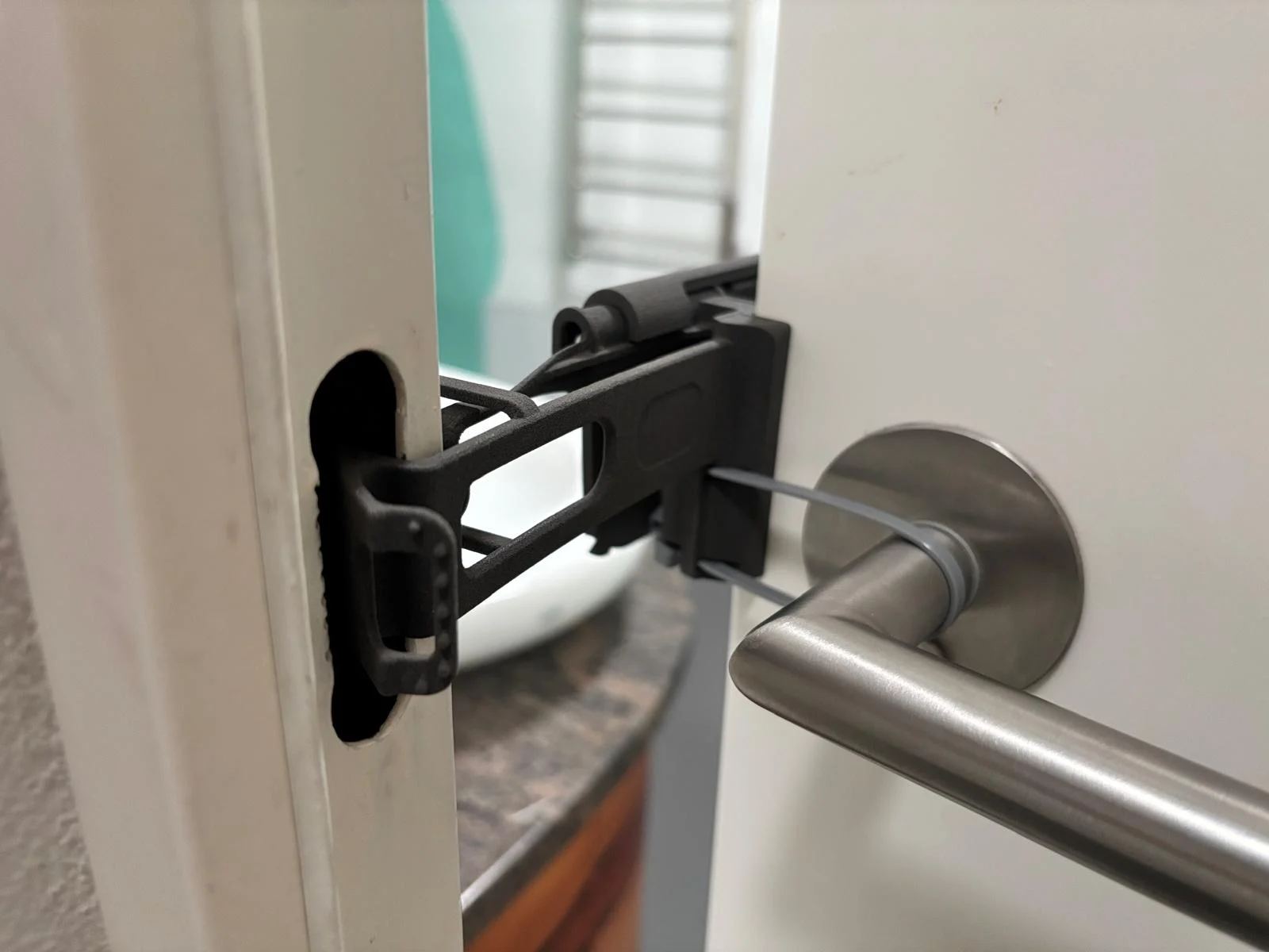 Die Montage erfolgt ohne Bohren oder Verschrauben. Türblatt und Rahmen bleiben unbeschädigt. Geeignet für den Einsatz in Wohnräumen, auch in Mietobjekten.